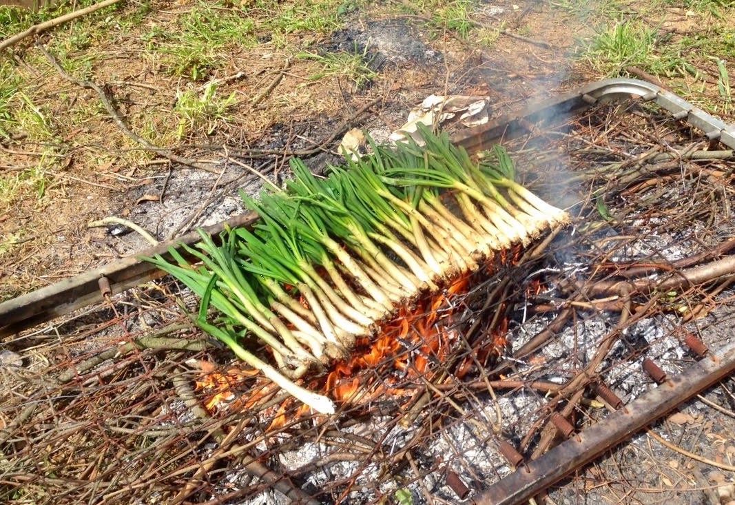 l'any). Els calçots es fan al foc, i per menjar-los els suques en una salsa, que